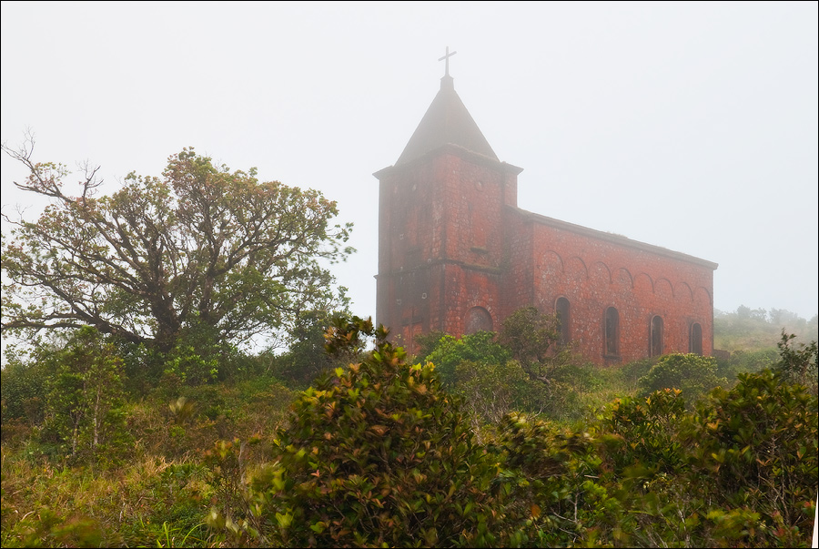 В шесть не в шесть, но в четверть седьмого я с собой всё-таки договорился выйти наружу. Супер! Вот и поларовый костюм, наконец, пригодился. А то я уже переживал, что зря пилякал его за восемь тыщ километров. Знал бы заранее, я бы ещё и ветровку зацепил. Бродить в активно мигрирующих с севера на юг облаках, было, честно скажем, сыро, безрадостно и дискомфортно. Ледяной ветер легко пробирался сквозь два слоя одежды, заставляя мелко трястись и обнимать себя за бока. Кто там говорил, что в Камбодже есть три всего времени года: “жарко”, “очень жарко” и “нестерпимо жарко”? Прогуляйтесь во время или сразу после окончания сезона дождей в Слоновые горы - узнаете о Камбодже много нового и интересного... До католической церкви и Казино я всё-таки прогулялся, но подходить слишком близко к приземистому парапету, на котором давеча ужинал, мне показалось неразумным. Это Рэмбо учили со скал сигать, а потом себя иголками по живому “штопать”… Фотографировать почти не получалось: объектив моментом заплёвывало каплями до полного неприличия. Только теперь я вспомнил, что давно не держал в руках бленды, которая хоть отчасти, но могла спасти переднюю линзу от слепого бокового дождя…