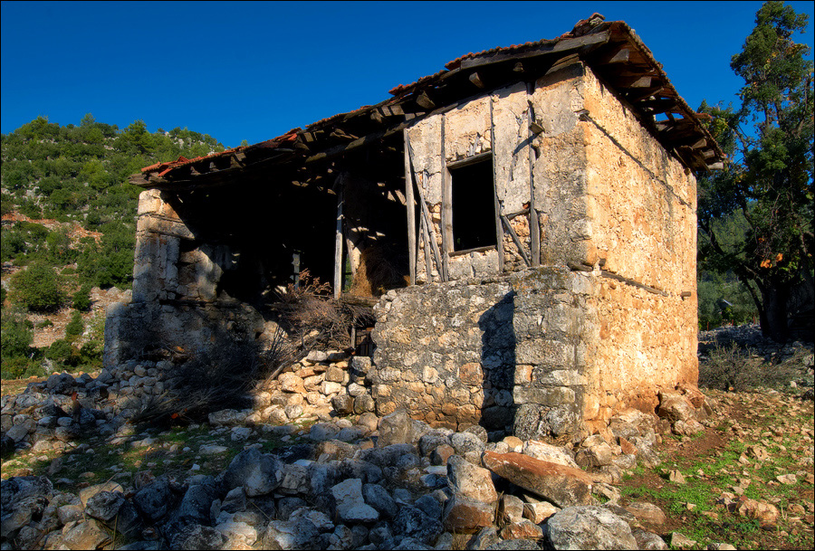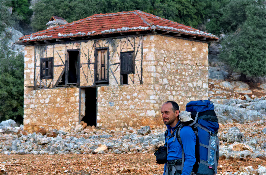 Разумнее было мирно идти по дороге, но маркировка почему-то считала, что лучше криво, да коротко. Единственная полукруглая в поперечном разрезе колея не особо отличалась фактурой от каменистого ложа вчерашней долины. Разнообразивший рельеф мох очень скоро отстал, уступив место слоистому, красновато-зелёному на сколах ракушечнику. Деревья нехотя сдавали в росте, сосны вытеснялись чем-то, похожим на акацию. Отовсюду пёрли, с каждой сотней метров набирая мощь, "средиземные" кустарники. Зейтин, - если то, куда нас вынесла маркировка, реально было Зейтином, а не ещё одним зачуханным "сельскохозяйством" - выглядел россыпью древних хибар, вросших в камень по самые окна. Предоставь им шанс ещё несколько лет разваливаться с той же скоростью, результат будет мало чем отличаться от эллинской застройки. Ёрш в твою медь, а ведь не ровен час, именно так в туреччине "клонируют" приносящие нефиговый доход Миры и все прочие… Олимпосы!!! “Живых душ” в посёлке оказалось аж пару кур, что в... ГМ... свете ночной погони несказанно меня успокоило: повстречать на узкой дорожке прайд бесхозных волкодавов в последний день похода, конечно, преумножит и без того критическую массу воспоминаний, но... Оно нам надо?