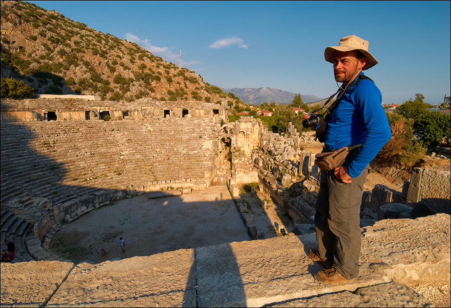 Пылая справедливым гневом, я едва смог противостоять пробуждению дурных наклонностей Сэма Сэруэля Сэра Сэмюеля Харриса. Ну, вы должны помнить насчёт "...руки прямо чешутся сорвать такую доску, и колотить ею по башке того, кто её повесил, пока он не испустит дух, и похоронить его, водрузив эту доску на его могилу вместо памятника... А заодно перерезать всех членов его семьи, друзей, родственников, сжечь его дом, а потом с огромным удовольствием спеть на пепелище комические куплеты"… Простите, немного погорячился. Кровожадные наклонности, они, как и ипохондрия, завсегда на закате делаются. Настрой припозднившихся посетителей, к слову сказать, незначительно отличался от моего. Все бросались грудью на трос с белыми табличками и, жалобно повизгивая от возмущения, откатывались по указателям вправо. К деревянному щиту “Likiya Yolu” с текстами на немецком языке и мощной сварной раме с деревянными ступенями, ходом коня возносящейся под высокие арки, полукругом обступившие галёрку великолепно сохранившегося греко-римского театра.