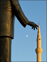 Шутки шутками, но в спальных районах Демре точно так же не встречалось приличных кафе, как во всяких там Зейтинах да Караёзах. Может, здесь принято торговать продуктами первой необходимости в бутиках GSM и готового платья?!! Исходя голодной слюной и мрачными мыслями мы практически без пауз и остановок доковырялись до самого центра города. Окажись на месте местечкового муэдзина Ваш покорный слуга, он несказанно бы оскорбился невыразительным видом собственной мечети в сравнении с протяжёнными кварталами сувенирных лавок. Я и сам обиделся: идёшь-идёшь, а сфотографировать нечего! За мечетью, наконец, вычислился общепит с умеренно-демократичными ценами, где мы и вдарили с четырёх рук по фасолевому рагу, цыплёнку в кисло-сладком соусе и "семейной" миске салата из овощей. Полируя всё вышеозначенное "Эфесом", я наблюдал за суетностью городской жизни, вполуха впитывая ламентации Лёшика о неправомочности отсутствия айрана в гипермаркетах Большого Торонто.