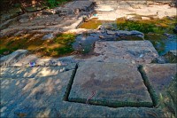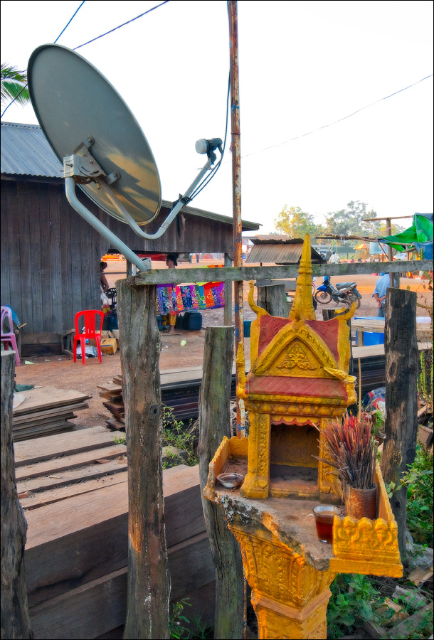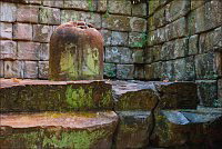 Температура, не особенно утруждая себя торможением, дотянулась до сорока, а мы, энергично потея, подтянулись к святилищу Бога Шивы - Prasat Leung. Никогда в жизни я ещё не фотографировал, а тем более не обнимал вздыбленного мужского естества воистину божественных размеров. Да этот выдающийся образчик мужской силы Шивы почти с меня ростом, а толщиной - вдвое больше! Это что же будет, если такое на кого-то случайно уронят или, что ещё хуже... положат?!! У самого подножья гигантского лингама (если верить путеводителю, самому большого из отлично сохранившихся в Камбодже…) сидела белая девушка с толстой кипой исчёрканных авторучкой бумаг и навороченным жидкостным компасом. Я уже знал, что она пытается проверить: толстые квадратные основания лингамов всегда ориентированы по сторонам света, а узкий канал-водоток, по которому должна стекать за пределы святилища выливаемая в праздник на "прибор" священная вода, указывает строго на север. Мой GPS с этим постулатом был согласен до последней, доступной после запятой, цифры.