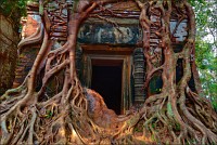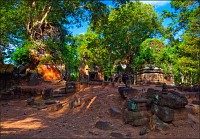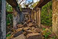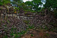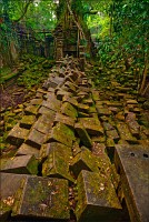 Да я ни за что... Да я никогда... Да вы что хотите со мной сейчас сделайте, хоть на беф-строганоff живьём порежьте, но я отсюда уходить раньше заката наотрез отказываюсь!!! Бенг Мели, Бенг Мели (Beung Mealea), моя прекрасная леди, Королева джунглей... Как я мог так долго откладывать, как я мог так долго сопротивляться встрече с тобой? Мистер Сет покатил наш мини-вэн в объезд, а мы с Ченом, оставив позади загаженную коровами песчаную тропку и пару безымянных пирамид из камня, перелезли через заваленную упавшим мега-древом высокую стену. Всё, что я увидел - разбегающийся по всем сторонам света хаос из каменных блоков. Я даже не сразу осознал, что это уже ОНА и есть. Ожидалось увидеть что-то типа позавчерашнего Та Прохма, которому с лёгкой руки Машины Времени позволили "ходить, как запущеный сад"... А получилось - во что превратятся наши собственные города, предоставь природе решать, “who is who” в этом огромном загадочном мире. Нужно было просто научиться не смотреть, но видеть. Это пришло очень быстро. И тогда произошло чудо.