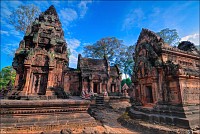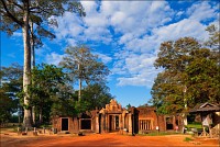 Прекрасно сохранившиеся парные библиотеки тоже были чёрными. Даже украшенный белоснежными бутонами аналог глицинии и тот терялся во мраке окружающего. Вообще, следует отметить, “книгохранилища” кхмерских святынь везде в приличном состоянии. Варвары берегли письменное наследие древних? Не совсем так. Скорее всего, они берегли именно "вместилища" знаний, ибо ни одной книги тех времён до наших дней не дожило. Во всяком случае, когда я начинал грязно приставать с расспросами, почему гиды уверены, что это были именно библиотеки, и просил предъявить в доказательство хоть одну книжную полку (оставим пока в покое фолианты...), ответом мне неизменно был весёлый смех. Центральный комплекс Banteay Samre был точно таким же, как и пяток подобных, виденных мною ранее. Определённо наступало время что-то круто менять в жизни, и я был рад, что завтра утром начинаются "большие перемены".