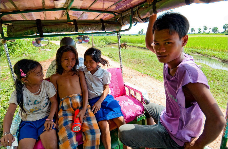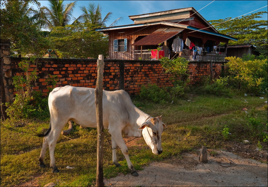 Нет, я не могу. Школьники в белых рубашках с чёрными галстучками - это что-то! Ещё сильнее "не могу" - сначала меня поразил этим в самое сердце Кампот, теперь добивают пригороды - все кхмеры мне улыбаются. Все со мной здороваются. Все приветственно машут руками. И дети, и взрослые. Я не знаю, что с этим делать. Удивительные люди. Нигде, кроме молдавской глубинки, я таких душевных традиций не встречал. Мне здесь всё больше нравится. И ещё... хоть вы меня убейте, хоть на куски разрежьте, я не понимаю, куда катится этот мир. Никто, слышите, никто не просит у меня "уан долла". Даже стопроцентные нищие - и те не просят! Просто сидят тихонько у дороги и пристально смотрят в глаза. Что с этим делать, я тоже пока не знаю. Здесь, на юге Камбо, всё совершенно по-другому... Только хозяин геста точно такой же душевный, как мистер ВанКунн. Пошутит, улыбнётся, и всё, что бешенный баранг воспалённым мозгом удумает, каким-то чудом становится реальностью.