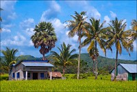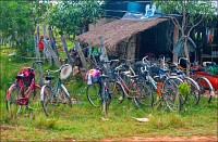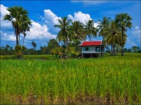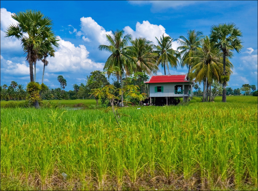 "Пионеры" вывели меня наружу через совсем другой выход. Уж не был ли это анус обещанного Дракона? Скорее всего - нет. "Анус" определённо был там, где я чуть без обуви не остался Выдал всем положенные "уан доллы", взгромоздился в тук-тук, изгваздав его своими многострадальными тапочками и штанинами до состояния полнейшего свинарника. "Снова старт, он взят, и нет пути назад"... - я по будённовски гарцую на полусогнутых в своей карете. Вокруг - глухомань, что называется, сиволапая. Аборигены вовсю недоспевший рис убирают - кусять оцень хосетса? Розовые хрюшки в свободном поиске по всей деревне шатаются - какой правильный в этом смысле тхеравада буддизм - свинину кхмерам хряцать можно! Женщины маленькими кувалдами дробят сине-зелёный камень в мелкий щебень. Дикари-с. У них же есть бензиновые ледодробилки. Засыпаешь вместо метрового брикета льда эти самые сине-зелёные кирпичи, включаешь движок на самые низкие обороты... Вдруг, получится?