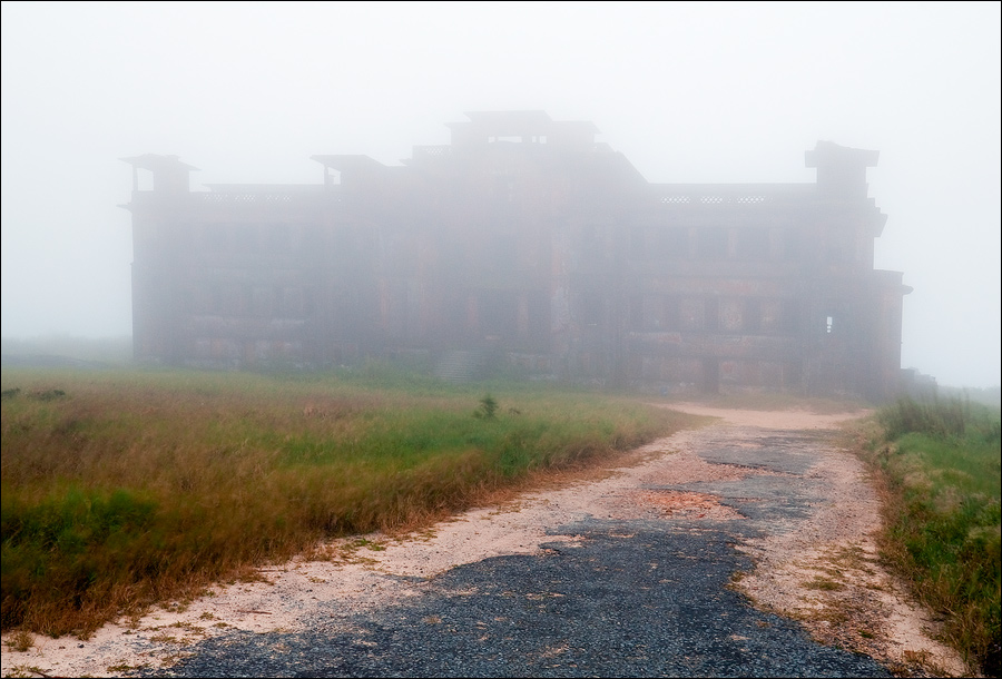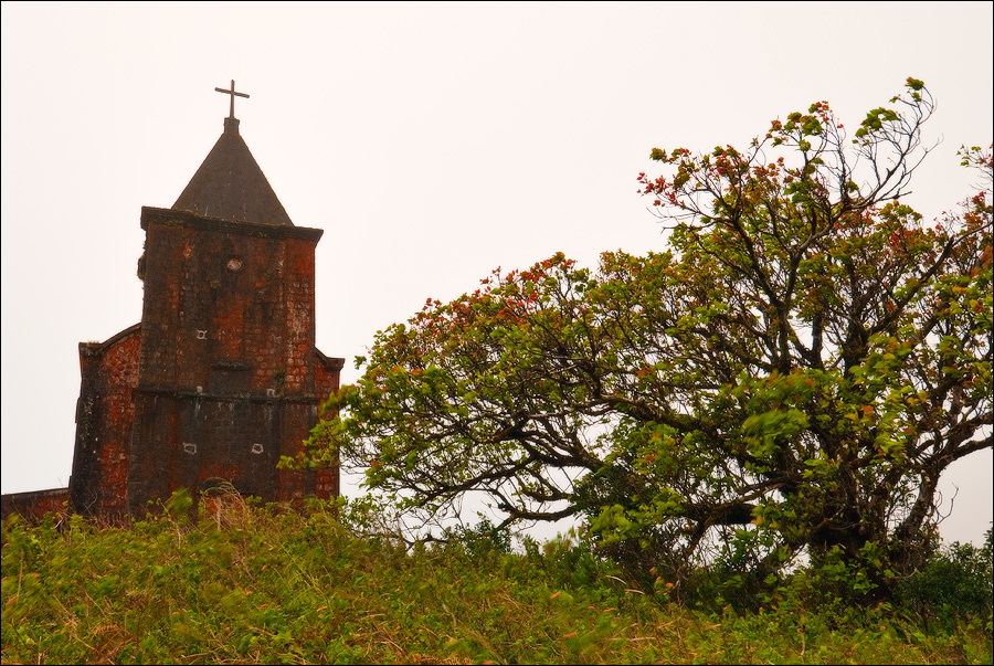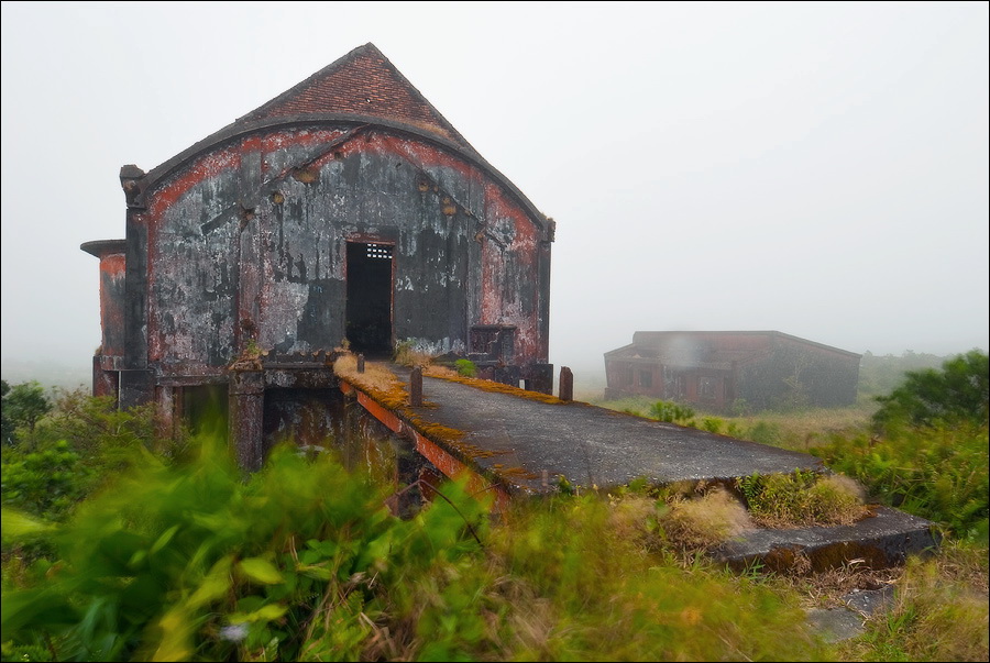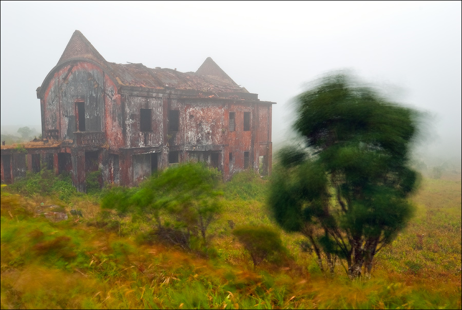 В шесть не в шесть, но в четверть седьмого я с собой всё-таки договорился выйти наружу. Супер! Вот и поларовый костюм, наконец, пригодился. А то я уже переживал, что зря пилякал его за восемь тыщ километров. Знал бы заранее, я бы ещё и ветровку зацепил. Бродить в активно мигрирующих с севера на юг облаках, было, честно скажем, сыро, безрадостно и дискомфортно. Ледяной ветер легко пробирался сквозь два слоя одежды, заставляя мелко трястись и обнимать себя за бока. Кто там говорил, что в Камбодже есть три всего времени года: “жарко”, “очень жарко” и “нестерпимо жарко”? Прогуляйтесь во время или сразу после окончания сезона дождей в Слоновые горы - узнаете о Камбодже много нового и интересного... До католической церкви и Казино я всё-таки прогулялся, но подходить слишком близко к приземистому парапету, на котором давеча ужинал, мне показалось неразумным. Это Рэмбо учили со скал сигать, а потом себя иголками по живому “штопать”… Фотографировать почти не получалось: объектив моментом заплёвывало каплями до полного неприличия. Только теперь я вспомнил, что давно не держал в руках бленды, которая хоть отчасти, но могла спасти переднюю линзу от слепого бокового дождя…