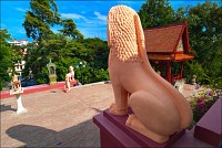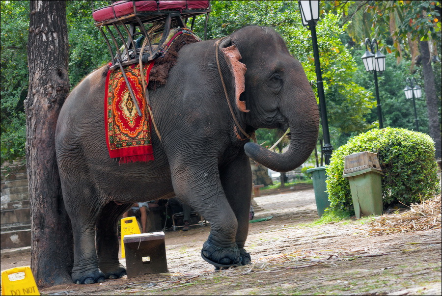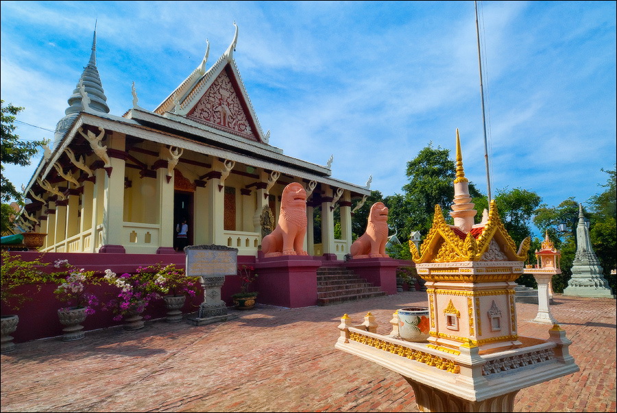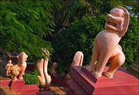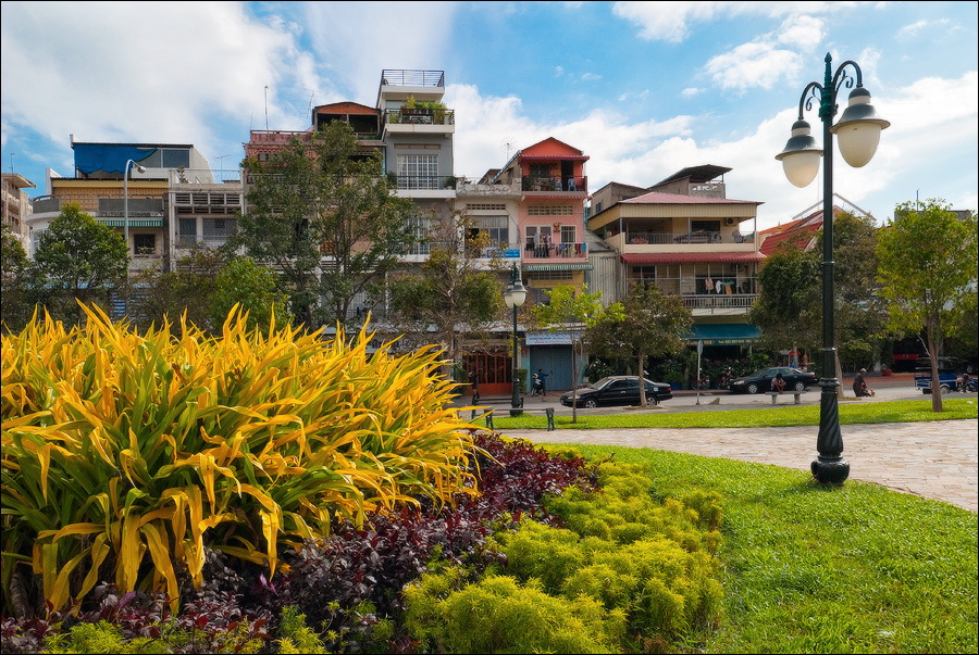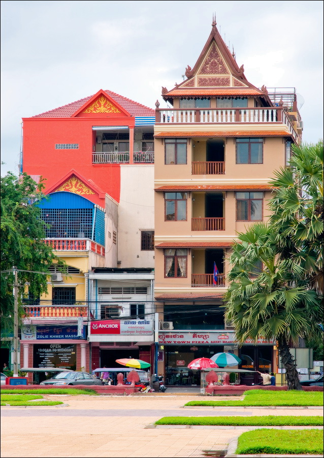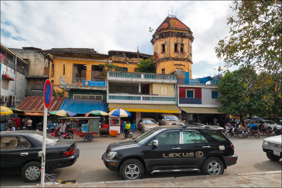 Храму Ват Пхном не удалось поразить моего воображения. Слишком тут всё было современным и гламурным. Охраняющие главную лестницу и балюстраду львы так вообще показались сделанными из розовой жвачки. По прилегающему к храму парку гуляли дети, макаки, полицейские и очень стыдливые проститутки. Внимательно разглядывая последних (что они мне “мяукали”, я так и не понял, но общий курс их навязчивых предложений был понятен). Я так и не смог решить для себя, “мальчики” они под одеждой или “девочки”. Ну, точно по Владимиру Высоцкому: “проверяй, какого пола твой сосед”… От Храма я двинулся прямо на юг, дивуясь опутанными проводами телеграфными столбами. Интересно, местным связистам, как и нигерийским, тупо лень копать, или Пном-Пень лежит на толстенной базальтовой плите? Сияющие хромом и перламутром краски “Лексусы”, припаркованные у прохудившихся крышами развалюшек. Раздражающие скрежещущим грохотом слух бензиновые ледодробилки. Торгующие лапшой и морепродуктами забегаловки, один вид которых заставлял меня - брр-р-р - передёргивать плечами. Лавки, торгующие настолько кичевым ассортиментом народного творчества, что даже думать не хотелось что-то “сувенирное” здесь приобретать. Переполненные мусором дренажные стоки, бумага, пластик, гнилая органика вываленных на обочину фруктов. Тук-тукеры и нищие, которых тупо хочется забить ногами, чтобы никогда больше ни к кому не приставали. Куда я попал?!!!