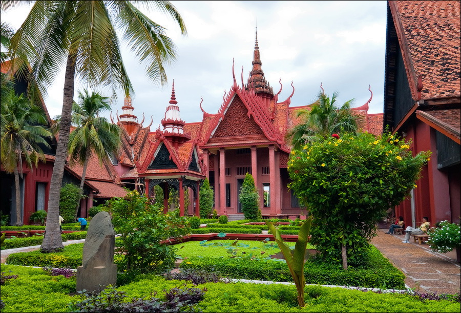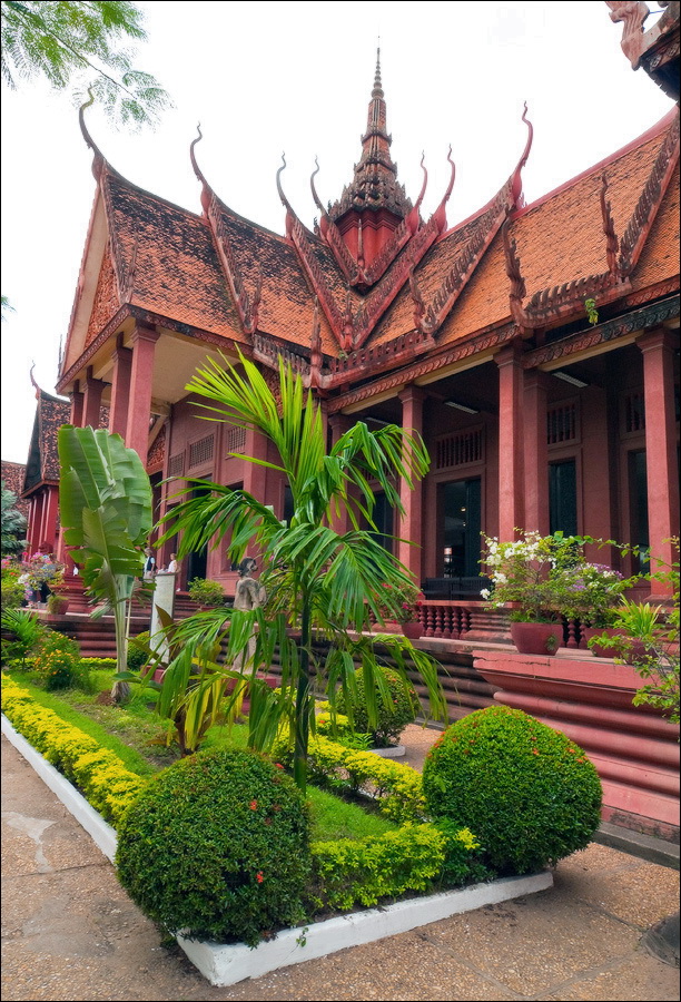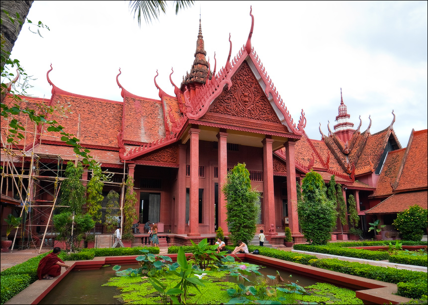 Единственное за что хочу (и обязательно скажу…) огромное СПАСИБО Пном Пеню - за Национальный Музей. Три доллара - брызги за великолепнейшую подборку скульптур, барельефов и прочих артефактов Ангкорианской эпохи. Я “заблудился” в нём более чем на три часа (сам того не зная, "проэтосамливая" Серебрянную Пагоду и Королевский Дворец...) и не жалею ни о единой потраченной секунде! Музей оказался "золотым штрихом" к портретам практически всех храмов, что я уже видел и очень хотел увидеть. Меня по настоящему захватила пластичность перехода от индуизма к буддизму. Ростки двух великих религий переплелись в Камбодже не хуже корней душащих фиг в Та Прохме. Они взаимопроникали друг в друга, как выплеснутое на серебряную пластину живое озерцо ртути. Окружённые стройными пальмами бассейны с золотыми рыбками, по забранным в гранит берегам которых медитировали о своём баранги и монахи, украшали внутренний двор Музея. Почему-то мне сразу вспомнилась открытая небу пещера-храм. Пусть пещера была почти круглой, а двор музея - правильным квадратом, было в их покое и тишине что-то невыразимо общее. Мне настолько здесь понравилось, что я не поленился пробежаться по экспозиции повторно.