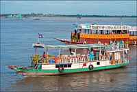 Ну вот, допрыгался... Теперь я - не я, а дракон огнедышащий. Ну-ка, ну-ка, кому здесь дать прикурить... от кончика сигареты и до обгорелых подошв? Нет. До ближайшей воды я в таком состоянии не дойду... Нужно срочно ананасового сока булькнуть. Странное дело. Или я к жаре уже привык, или в Пнём-Пне такая же чудная вечерняя прохлада, как и в любимом Кампоте? Это что же, господа хорошие, получается, Сием Рип - самое жаркое место во всей, растуды ея в качель, Камбодже? Рёв транспорта и постоянное бибиканье со всех сторон жутко напрягает. Не прошло и полдня, а я уже готов материться по-русски и по-английски в ответ на "Hello, sir, tuk-tuk!". Отныне и впредь - никаких Пном-Пеней! Вваливаюсь в ИндоЧайну и, прямо с порога, -“Завтра же хочу рекой в Сием Рип”! - ”Легко”, - отвечают, - “вот тебе билет, чтобы в 7 утра был на пристани”! Рейс в семь тридцать, но ты, баранг, уж поверь, лучше тебе там быть к семи ноль-ноль. Значит, утренний фото-тур Императорского Дворца и Золотой Пагоды отменяется. Не велика потеря. Видел я их через забор... вьетнамским духом за версту несёт. Все эти рюшки-завитушки-черепичка и трети ангкорского времени против натиска джунглей не выстоят!