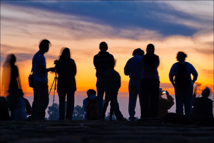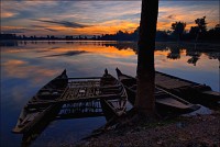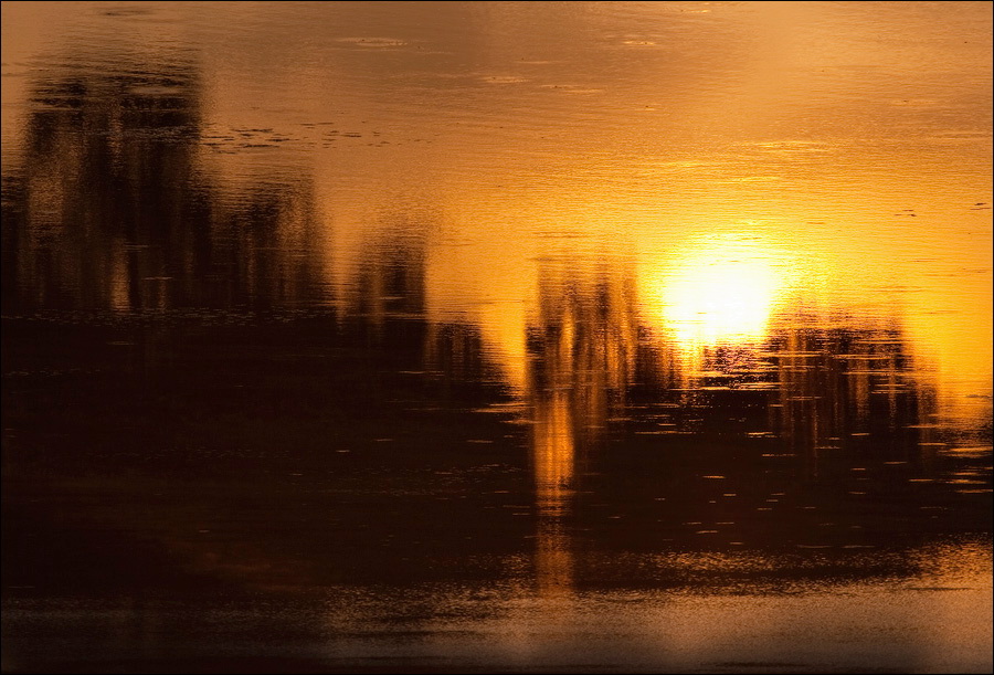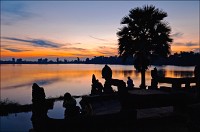 Темные контуры Нагов и львов. Аметистовая фиолетовость недвижных вод. Алые и золотые росчерки высокого неба. Щёлканье затворов и разговоры на добром десятке языков. Ну, здравствуй, коль пришёл, последний рассвет! Не задумываясь, что кому-то мешаю (потомки самураев быстро научили плохому…), раскорячиваю штатив там, где мне больше нравится. Чувствую кинжальный огонь взглядов на спине, терплю. За мной хвостиком волокутся две несовершеннолетние “уан-доллы”. Та, что постарше, фарцует “фенечками” из бисера, младшая - оригамными лебедями. Хорошо, страшная, как перекормленная Гаруда американка (один нос крючком чего стоит…) отвлекает их душеспасительной беседой о необходимости учить английский язык. Потихоньку смещаюсь вправо, подальше от фотографирующей суеты, к кучам гниющих водорослей и деревянному настилу временного пирса. Разница всего метров пятьдесят, но здесь хорошо, тихо и необитаемо. Стараюсь ни на чём специально не фокусироваться, а впитывать именно атмосферу. Получается неплохо. Даже внутренний диалог отключается как будто сам собой. Затем следует хватание себя любимого за “косичку” и выдёргивание из болота грёз в реальный мир.