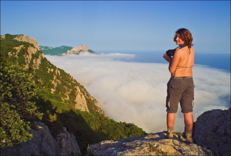 видеть. За мной, на расстоянии вытянутой треккинговой палки - Света. Олег