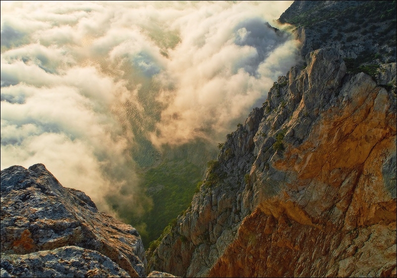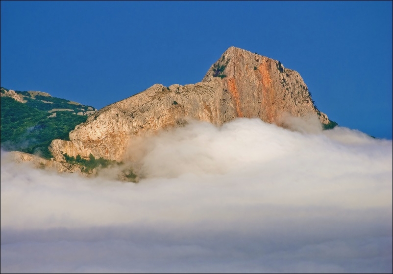 отрог с тоненьким ярко-зелёным поясом сосен под самой яйлой обрушил на
